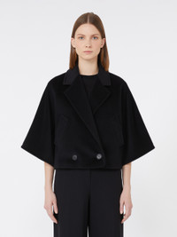 DETAILS Double-breasted cropped jacket, with a distinctive oversized fit. Wool and cashmere beaver jacket Lapel collar Short, wide kimono sleeves Two-button closure Slanted welt pockets on the sides Embellished with a tailored pick stitch Lined in Monogram jacquard fabric COMPOSITION AND CARE Fabric 90% virgin wool, 10% cashmere; lining 100% viscose. Do not wash; do not bleach; do not tumble dry; cool iron; professionally dry clean perchloroethylene - mild process; do not wet clean.; do not iron the buttons.; protect buttons before washing.; contains non-textile parts of animal origin. Distributed by Max Mara S.r.l., registered office in Reggio Emilia (Italy), Via Giulia Maramotti 4, 42124 (IT)