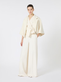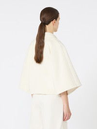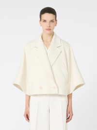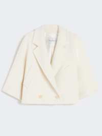 DETAILS Double-breasted cropped jacket, with a distinctive oversized fit. Wool and cashmere beaver jacket Lapel collar Short, wide kimono sleeves Two-button closure Slanted welt pockets on the sides Embellished with a tailored pick stitch Lined in Monogram jacquard fabric COMPOSITION AND CARE Fabric 90% virgin wool, 10% cashmere; lining 100% viscose. Do not wash; do not bleach; do not tumble dry; cool iron; professionally dry clean perchloroethylene - mild process; do not wet clean.; do not iron the buttons.; protect buttons before washing.; contains non-textile parts of animal origin. Distributed by Max Mara S.r.l., registered office in Reggio Emilia (Italy), Via Giulia Maramotti 4, 42124 (IT)
