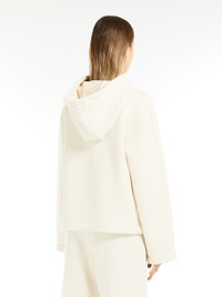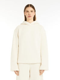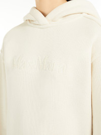 DETAILS Short sweatshirt in soft cotton fabric featuring long low set-in sleeves and a hood with topstitched dart detail. The front is customised with Terry-knit Max Mara logo detail and embroidered trims. COMPOSITION AND CARE Jersey fabric 91% cotton, 9% polyester; - exclusive of embroideries. Machine wash cold delicate cycle; do not bleach; do not tumble dry; flat drying in the shade; cool iron; professionally dry clean perchloroethylene - mild process; professional wet cleaning - very mild process.; iron with a cloth between.; using neutral detergent.; put this item into a string bag before washing it. Distributed by Max Mara S.r.l., registered office in Reggio Emilia (Italy), Via Giulia Maramotti 4, 42124 (IT)