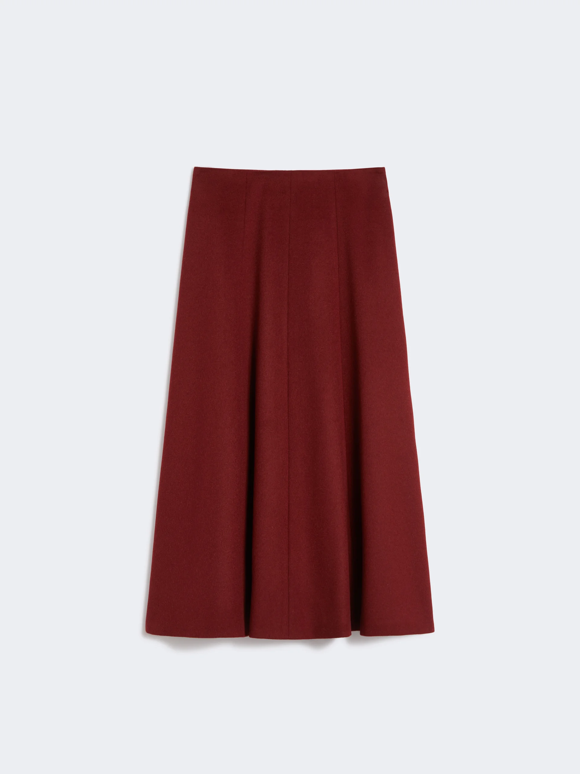 DETAILS Midi skirt featuring an A-line silhouette that is slightly fitted on the hips. Skirt in lightweight zibeline baby camel drap Flared Zip fastening Seam motif on the front and back Lined COMPOSITION AND CARE Fabric 100% camelwool; lining 95% acetate, 5% elastane. Do not wash; do not bleach; do not tumble dry; cool iron; professionally dry clean perchloroethylene - mild process; do not wet clean. Distributed by Max Mara S.r.l., registered office in Reggio Emilia (Italy), Via Giulia Maramotti 4, 42124 (IT)