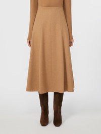 DETAILS Midi skirt featuring an A-line silhouette that is slightly fitted on the hips. Skirt in lightweight zibeline baby camel drap Flared Zip fastening Seam motif on the front and back Lined COMPOSITION AND CARE Fabric 100% camelwool; lining 95% acetate, 5% elastane. Do not wash; do not bleach; do not tumble dry; cool iron; professionally dry clean perchloroethylene - mild process; do not wet clean. Distributed by Max Mara S.r.l., registered office in Reggio Emilia (Italy), Via Giulia Maramotti 4, 42124 (IT)