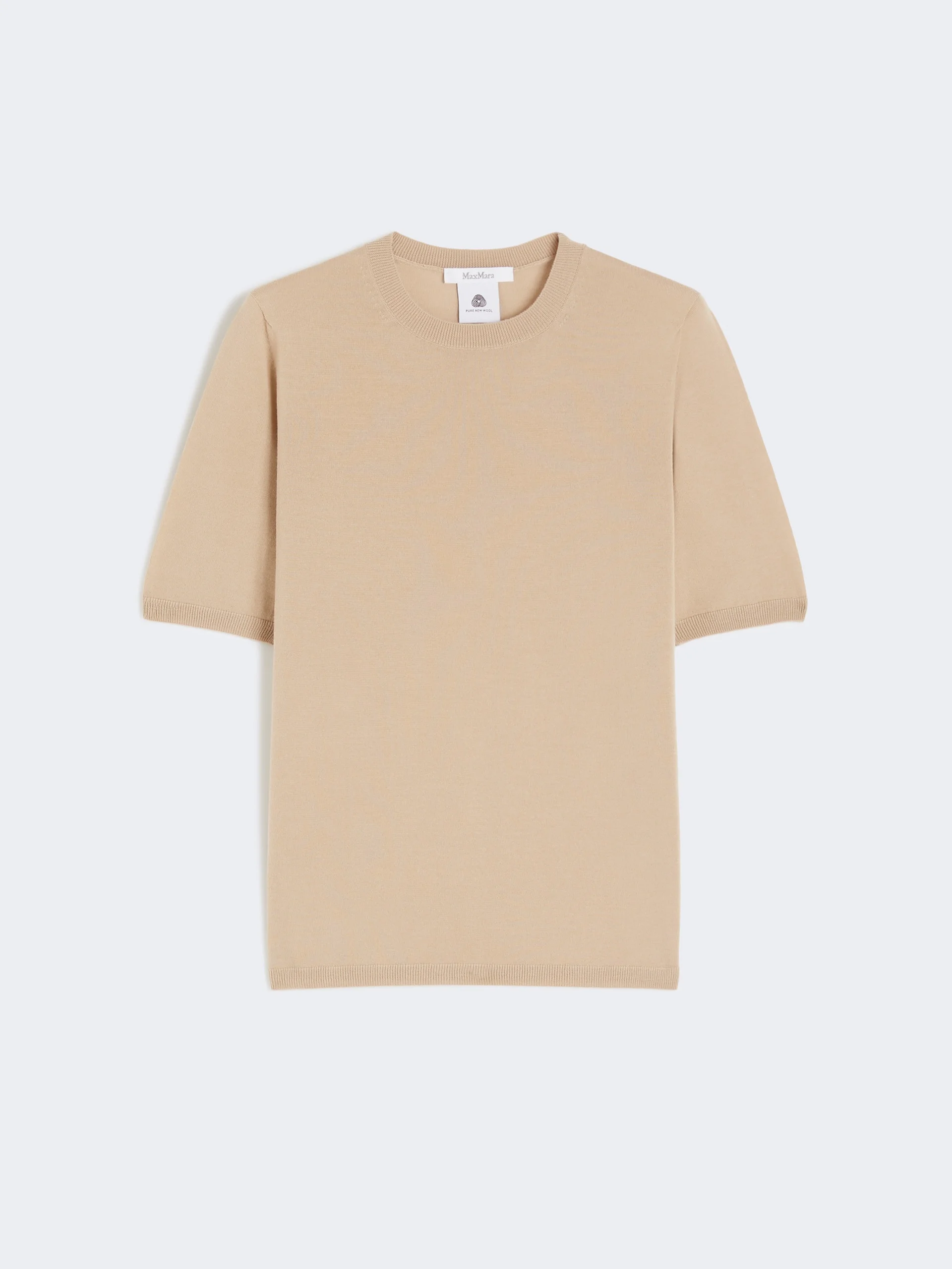 DETAILS Slim-fit essential-style sweater. Stockinette-stitched sweater in fine pure wool yarn Slim fit Crew neckline Short set-in sleeves COMPOSITION AND CARE 100% virgin wool. Hand wash cold (40°c max); do not bleach; do not tumble dry; flat drying in the shade; cool iron; professionally dry clean perchloroethylene - mild process; do not wet clean.; iron with a cloth between.; using neutral detergent. Distributed by Max Mara S.r.l., registered office in Reggio Emilia (Italy), Via Giulia Maramotti 4, 42124 (IT)