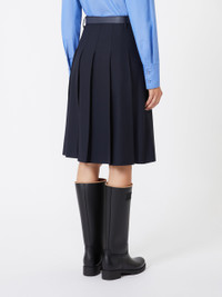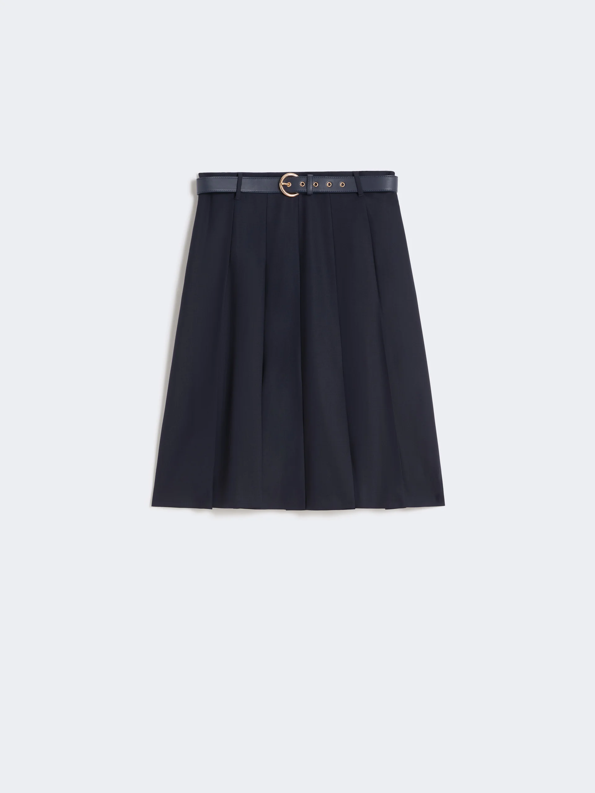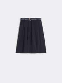 DETAILS Midi skirt crafted from wool, featuring a tailored silhouette enriched with structured pleats and concealed side slits. A clean-lined design makes this garment highly versatile. Stretch wool twill skirt Midi-length, slightly flared fit Side zip fastening In-seam side pockets Waistband with belt loops and matching coated fabric belt Unlined model COMPOSITION AND CARE Skirt fabric 97% virgin wool, 3% elastane; with belt in polyester with polyurethane coating. Skirt: do not wash; do not bleach; do not tumble dry; cool iron; professionally dry clean perchloroethylene - mild process; do not wet clean. Belt: do not wash; do not bleach; do not tumble dry; do not iron; do not dry clean; do not wet clean. Distributed by Max Mara S.r.l., registered office in Reggio Emilia (Italy), Via Giulia Maramotti 4, 42124 (IT)