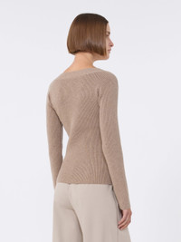 DETAILS Jumper with a feminine silhouette, entirely rib knit. - Wool and cashmere knit jumper - Slim fit - Wide V-neckline - Drop-shoulder long sleeves - Horn button fastening COMPOSITION AND CARE 62% wool, 27% cashmere, 10% polyamide, 1% elastane. Hand wash cold (40°c max); do not bleach; do not tumble dry; flat drying in the shade; cool iron; professionally dry clean perchloroethylene - mild process; do not wet clean.; iron with a cloth between.; using neutral detergent. Distributed by Max Mara S.r.l., registered office in Reggio Emilia (Italy), Via Giulia Maramotti 4, 42124 (IT) Collection: Max Mara Product code: 1361046106006 - MXMGIOIOSA