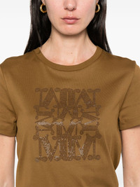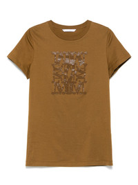 Giovane T-shirt Highlights - Chocolate brown - Crew neck - Short sleeves - Rhinestone embellishment Imported Composition Cotton 100% SIZE & FIT Model measurements Height 5 ft 10 in(1.78 m) Bust/Chest 33.46 in(85 cm) Hips 36.22 in(92 cm) Waist 23.22 in(59 cm) FittingInformation Designed for a relaxed fit, this piece allows for comfort and movement when worn Made from a midweight non-stretch fabric, this piece offers minimal elasticity when worn Washing instructions Hand Wash