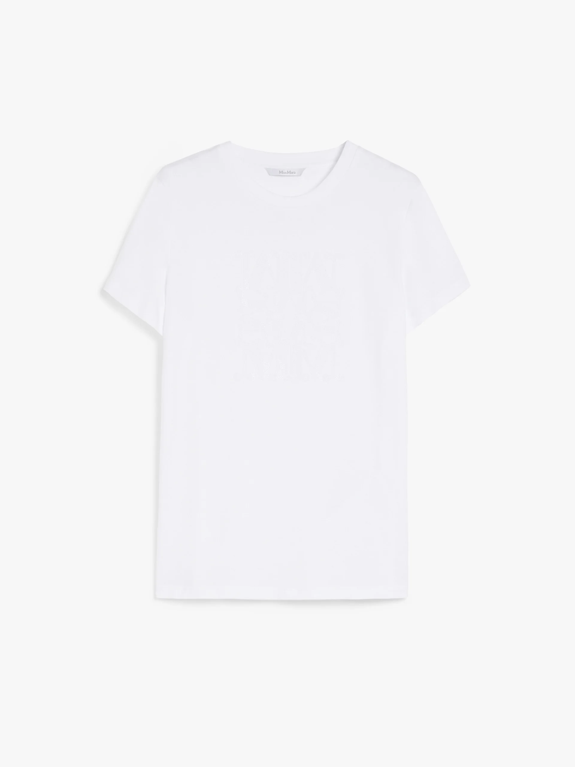 DETAILS Pure cotton T-shirt with a round neck and short sleeves. A regular-fit, straight-cut style, embellished with a MaxMarabesque motif embroidered in thread or rhinestones on the front. COMPOSITION AND CARE Jersey fabric 100% cotton; - exclusive of decoration. Hand wash cold; do not bleach; do not tumble dry; flat drying in the shade; cool iron; do not dry clean; do not wet clean.; iron with a cloth between.; using neutral detergent.; don’t rub.; turn the articles inside out before washing.; to be ironed on reverse. Distributed by Max Mara S.r.l., registered office in Reggio Emilia (Italy), Via Giulia Maramotti 4, 42124 (IT)