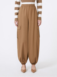 DETAILS High-waisted baggy trousers with elasticated inserts at the ankle. Flowing, pure cotton twill trousers Wide-leg fit Inset side pockets and cargo patch pockets with flap Elasticated waist Max Mara logo embroidered on the left pocket as worn COMPOSITION AND CARE Fabric 100% cotton; - exclusive of embroideries. Do not wash; do not bleach; do not tumble dry; cool iron; professionally dry clean perchloroethylene - mild process; do not wet clean.; put this item into a string bag before washing it.; turn the articles inside out before washing. Distributed by Max Mara S.r.l., registered office in Reggio Emilia (Italy), Via Giulia Maramotti 4, 42124 (IT)