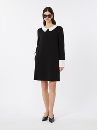 DETAILS Straight-fit short dress featuring contrasting-colour details. Cady dress Straight fit Rounded collar Set-in sleeves with 4 decorative buttons along the long cuffs Keyhole and 2-button detail on the back In-seam side pockets Unlined model COMPOSITION AND CARE 71% triacetate, 29% polyester. Machine wash cold delicate cycle; do not bleach; do not tumble dry; line drying in the shade; cool iron; professionally dry clean perchloroethylene - mild process.; wash the garment while it is fastened.; do not iron the buttons.; protect buttons before washing.; turn the articles inside out before washing. Distributed by Max Mara S.r.l., registered office in Reggio Emilia (Italy), Via Giulia Maramotti 4, 42124 (IT)