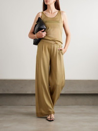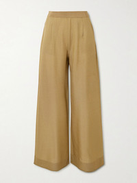 Max Mara's 'Gordon' pants blend the polished look of tailoring with the ease of stretch-knit fabric for a refined look and comfortable fit. They have an elasticated waistband and wide legs enhanced by soft pleats. Size & Fit - Fits true to size, take your normal size - High-rise, designed for a wide-leg fit - Elasticated at the waist for a flexible fit - Lightweight knit - Model is 177cm/ 5'10" and is wearing a size Small Model measurements: - Bust: 85cm/ 33” - Waist: 66cm/ 26” - Hip: 92cm/ 36” Details & Care - Gold stretch-knit - Pull on - 100% viscose - Dry clean