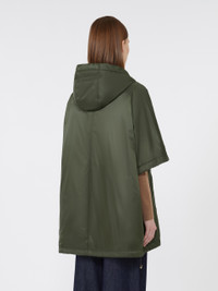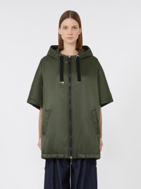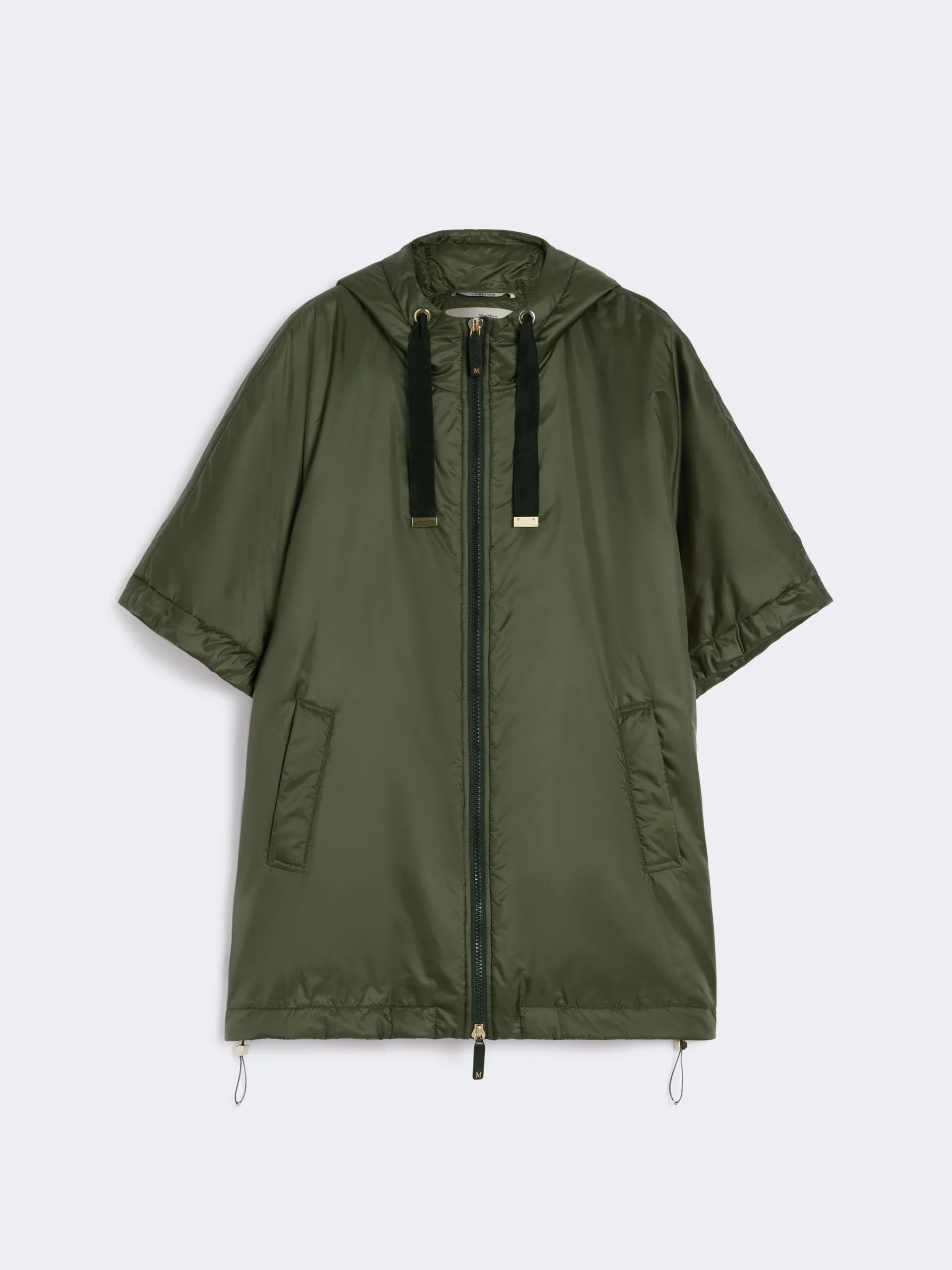 DETAILS Short cape with a boxy line and elastic drawstrings that come out on the sleeves and garment hem. The style is distinguished by the Cameluxe padding Water-repellent canvas cape Drawstring hood Short kimono sleeves Front zip fastening with leather zip pull with metallic Monogram Welt pockets on the sides COMPOSITION AND CARE Fabric 100% polyester; lining 100% polyester; with quilting in 48% polyester, 48% camelwool, 4% silk; - exclusive of decoration. Do not wash; do not bleach; do not tumble dry; do not iron; professionally dry clean perchloroethylene - mild process; do not wet clean.; wash the garment while it is fastened.; don’t iron the labels.; do not iron the ribbons.; protect the ends stoppers and/or the cord ends before washing.; turn the articles inside out before washing.; take off the zip tongue before washing.; contains non-textile parts of animal origin. Distributed by Max Mara S.r.l., registered office in Reggio Emilia (Italy), Via Giulia Maramotti 4, 42124 (IT)