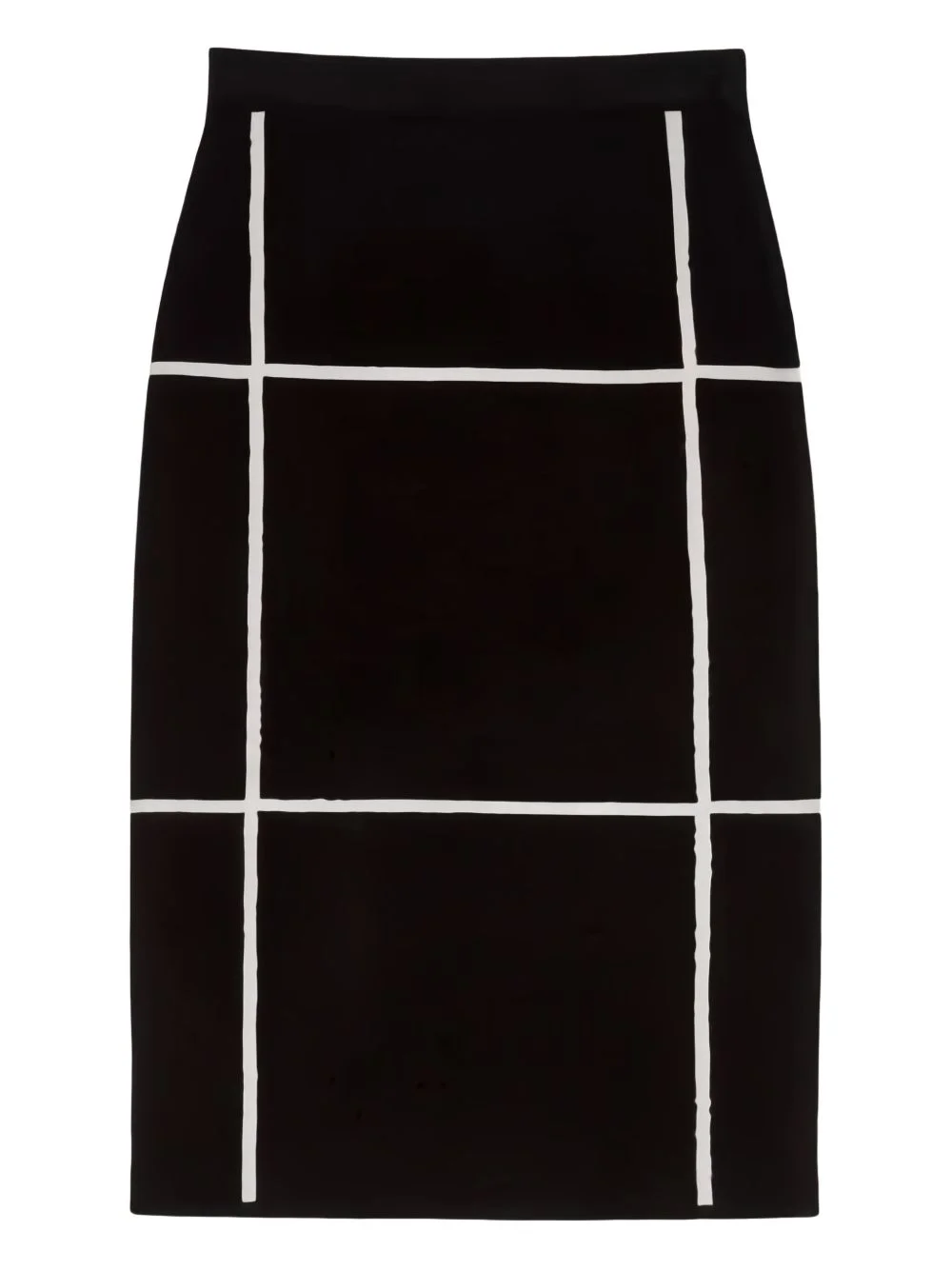 grid-pattern midi skirt Highlights - Black - Grid pattern - Straight hem Imported Composition Fabric 100% Washing instructions Read Manufacturer Guidelines