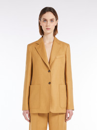 DETAILS Single-breasted blazer with a semi-fitted silhouette, made of pure linen twill fabric. The style has a lapel collar, set-in sleeves with buttoned cuffs and front patch pockets. Embellished by a breast pocket and central vent on the back. Two-button front fastening. COMPOSITION AND CARE Fabric 100% flaxlinen; lining 54% viscose, 46% cotton. Do not wash; do not bleach; do not tumble dry; cool iron; professionally dry clean perchloroethylene - mild process; do not wet clean.; wash the garment while it is fastened.; protect buttons before washing.; turn the articles inside out before washing. Distributed by Max Mara S.r.l., registered office in Reggio Emilia (Italy), Via Giulia Maramotti 4, 42124 (IT)