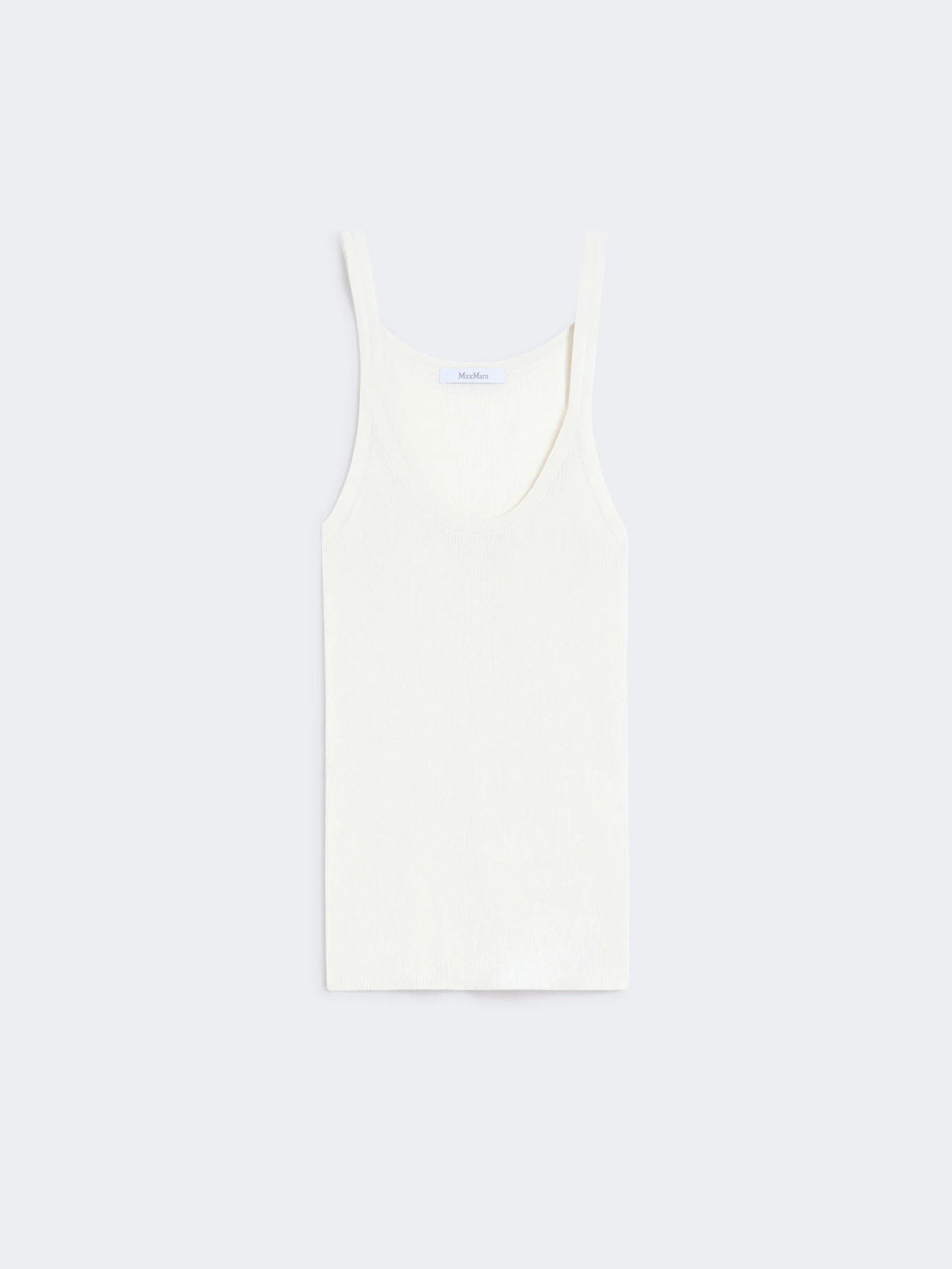 DETAILS Sleeveless top with ribbed knit that accentuates the silhouette. Cotton and viscose yarn top Figure-hugging Wide round neckline Slightly widened shoulder straps COMPOSITION AND CARE 55% cotton, 45% viscose. Hand wash cold (40°c max); do not bleach; do not tumble dry; flat drying in the shade; cool iron; professionally dry clean perchloroethylene - mild process; do not wet clean.; iron with a cloth between.; using neutral detergent. Distributed by Max Mara S.r.l., registered office in Reggio Emilia (Italy), Via Giulia Maramotti 4, 42124 (IT)