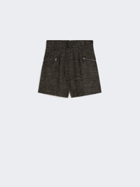 DETAILS Tailored-style shorts featuring a high-waisted silhouette and belt loops. Shorts in wool-blend boucle with Chevron design Figure-hugging, slightly flared at the hem Front closure with concealed zip and two visible buttons Slanted side pockets with zip Back waist darts Lined COMPOSITION AND CARE Fabric 56% virgin wool, 25% polyester, 19% acrylic; lining 95% acetate, 5% elastane. Do not wash; do not bleach; do not tumble dry; cool iron; professionally dry clean perchloroethylene - mild process; do not wet clean.; wash the garment while it is fastened.; do not iron the buttons.; protect buttons before washing.; contains non-textile parts of animal origin. Distributed by Max Mara S.r.l., registered office in Reggio Emilia (Italy), Via Giulia Maramotti 4, 42124 (IT)