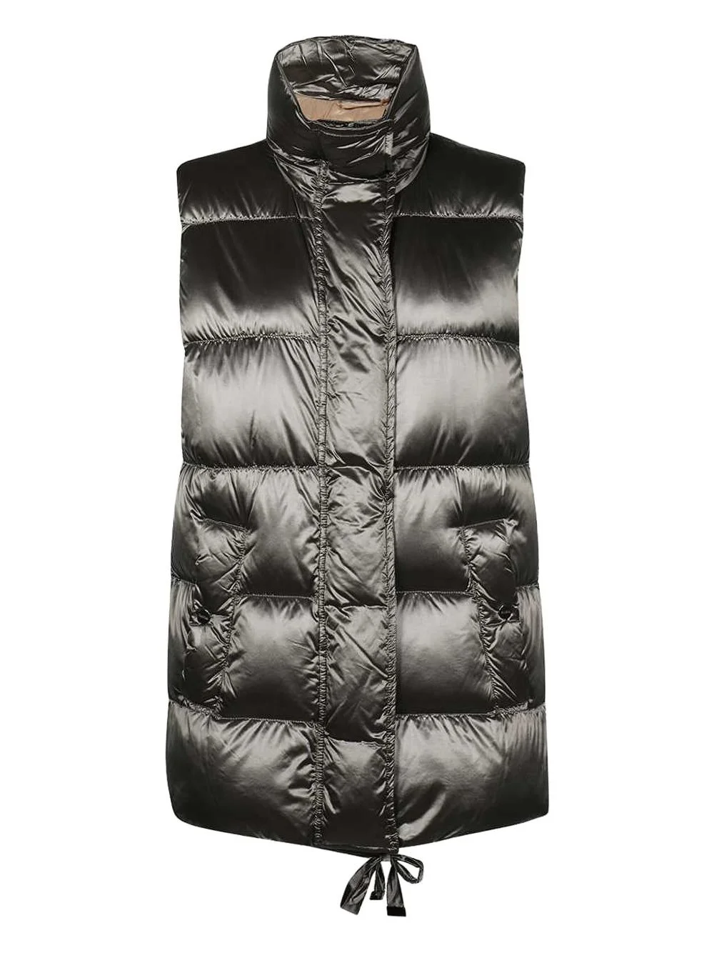high-neck quilted gilet Highlights - Dark grey - Quilted design - High-neck collar - Sleeveless - Drawstring hem - Padded body Imported Composition Outer: Polyester 100% Lining: Goose Down 90%, Goose Feather 10% Washing instructions Read Manufacturer Guidelines