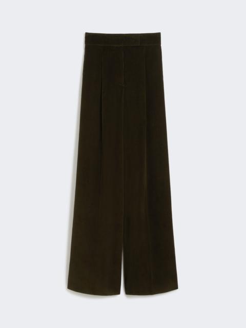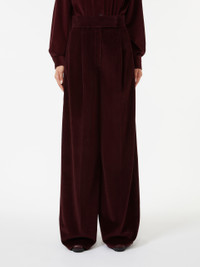 DETAILS High-waisted menswear-inspired trousers, featuring a tailored wide-leg construction. Cotton corduroy trousers Wide fit Fastening with a wide waistband tab, zip fly and small hook Side pockets Welt pockets at the back Waist pleats on the front Lined COMPOSITION AND CARE 100% cotton. Do not wash; do not bleach; do not tumble dry; cool iron; professionally dry clean perchloroethylene - mild process; do not wet clean.; do not iron the buttons.; protect buttons before washing.; contains non-textile parts of animal origin. Distributed by Max Mara S.r.l., registered office in Reggio Emilia (Italy), Via Giulia Maramotti 4, 42124 (IT)
