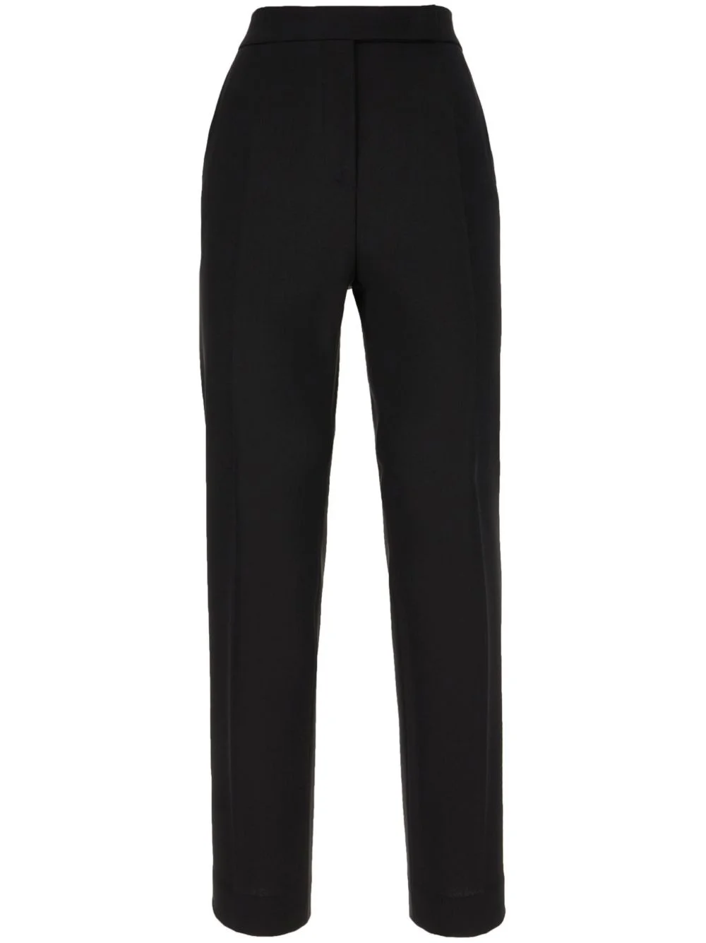 high-waisted tailored trousers Highlights - Black - Hook and zip fly fastening - Two side inset pockets - Two rear welt pockets - Pressed crease Imported Composition Virgin Wool 65%, Mohair 35% Washing instructions Dry Clean Only