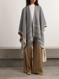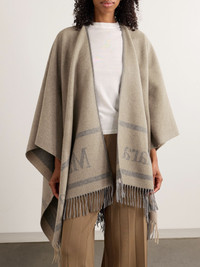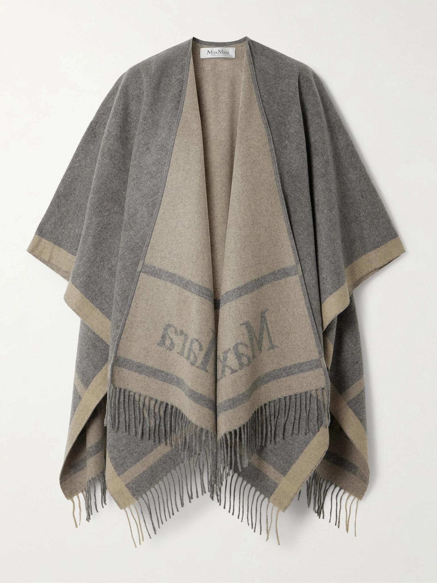Max Mara's 'Hilde' cape is so chic. It’s made from insulating wool that drapes effortlessly over your frame and is jacquard-woven with the label's moniker. Size & Fit - Comfortably fits those who are between a size XSmall-Medium and all body shapes Details & Care - Light-gray and beige wool-jacquard - 100% wool - Unlined - Dry clean