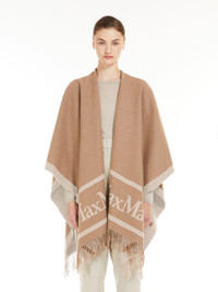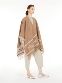 DETAILS Poncho customised with jacquard Max Mara motif on the bottom and long fringing at the end. Fine yarn-dyed pure wool yarn poncho 162 x 130 c COMPOSITION AND CARE 100% wool. Do not wash; do not bleach; do not tumble dry; cool iron; professionally dry clean perchloroethylene - mild process; do not wet clean. Distributed by Max Mara S.r.l., registered office in Reggio Emilia (Italy), Via Giulia Maramotti 4, 42124 (IT)