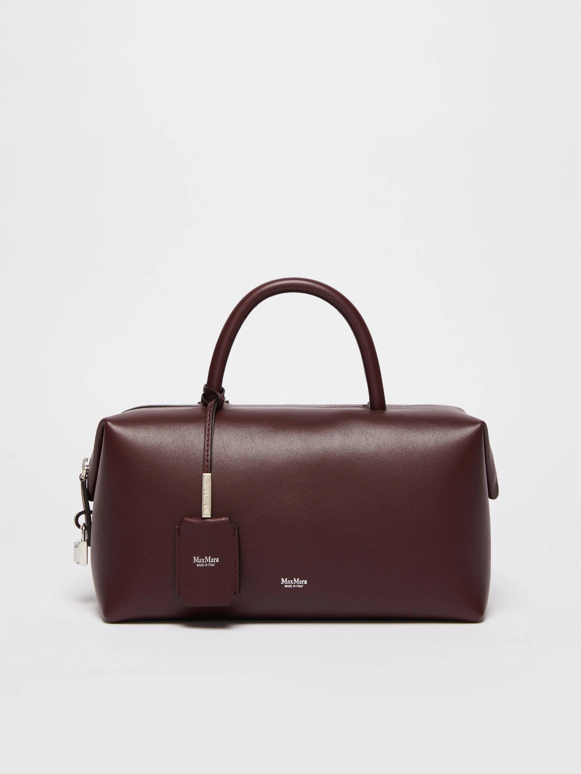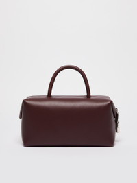 DETAILS Boston handbag with double handle and M-shaped folded sides with magnet, padlock and customised key-holder tag. Smooth natural calfskin leather Boston bag Interior bonded in suede with internal flat M-shaped pocket Removable 110-cm shoulder strap with moulded snap clips and matching ribs Leather feet and D-rings for shoulder straps and small leather items Max Mara logo hot-stamped with nickel foil Top zip closure Measurements: 26 x 15 x 13 cm COMPOSITION AND CARE Handbag in calf; inside in goat leather. Distributed by Max Mara S.r.l., registered office in Reggio Emilia (Italy), Via Giulia Maramotti 4, 42124 (IT)