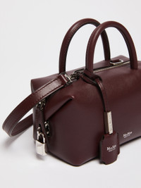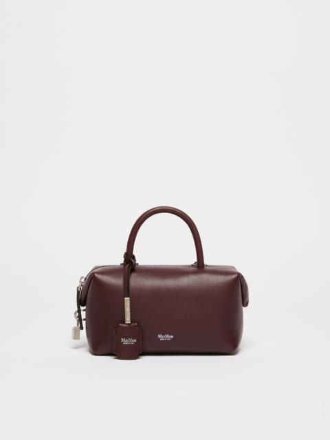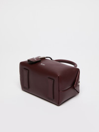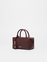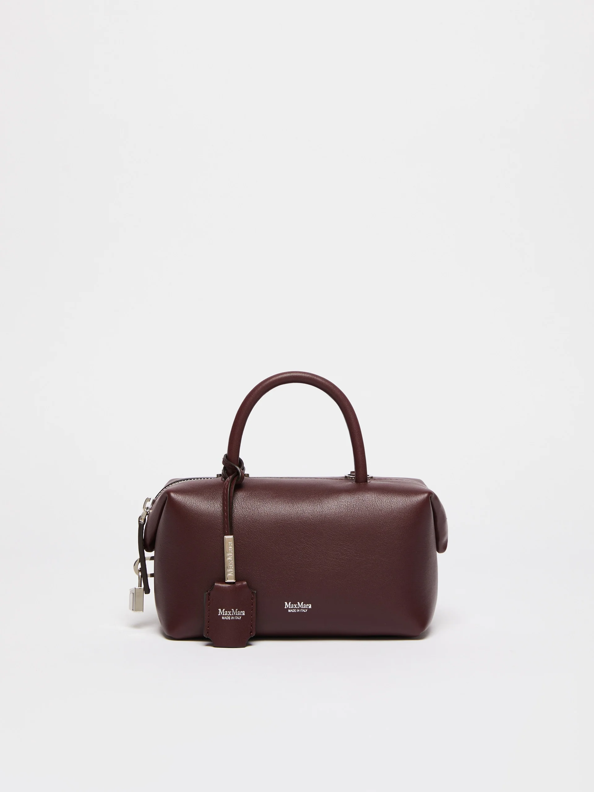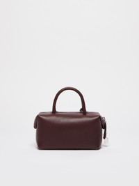 DETAILS Small Boston handbag with double handle and M-shaped folded sides with magnet, padlock and customised key-holder tag. Smooth natural calfskin leather Boston bag Interior bonded in suede with internal flat M-shaped pocket Shoulder strap removable with moulded snap-hook clasps Leather feet and D-rings for shoulder straps and small leather items Max Mara logo hot-stamped with nickel foil Top zip closure Measurements: 17.5 x 10 x 9 cm COMPOSITION AND CARE Handbag in calf; inside in goat leather. Distributed by Max Mara S.r.l., registered office in Reggio Emilia (Italy), Via Giulia Maramotti 4, 42124 (IT)