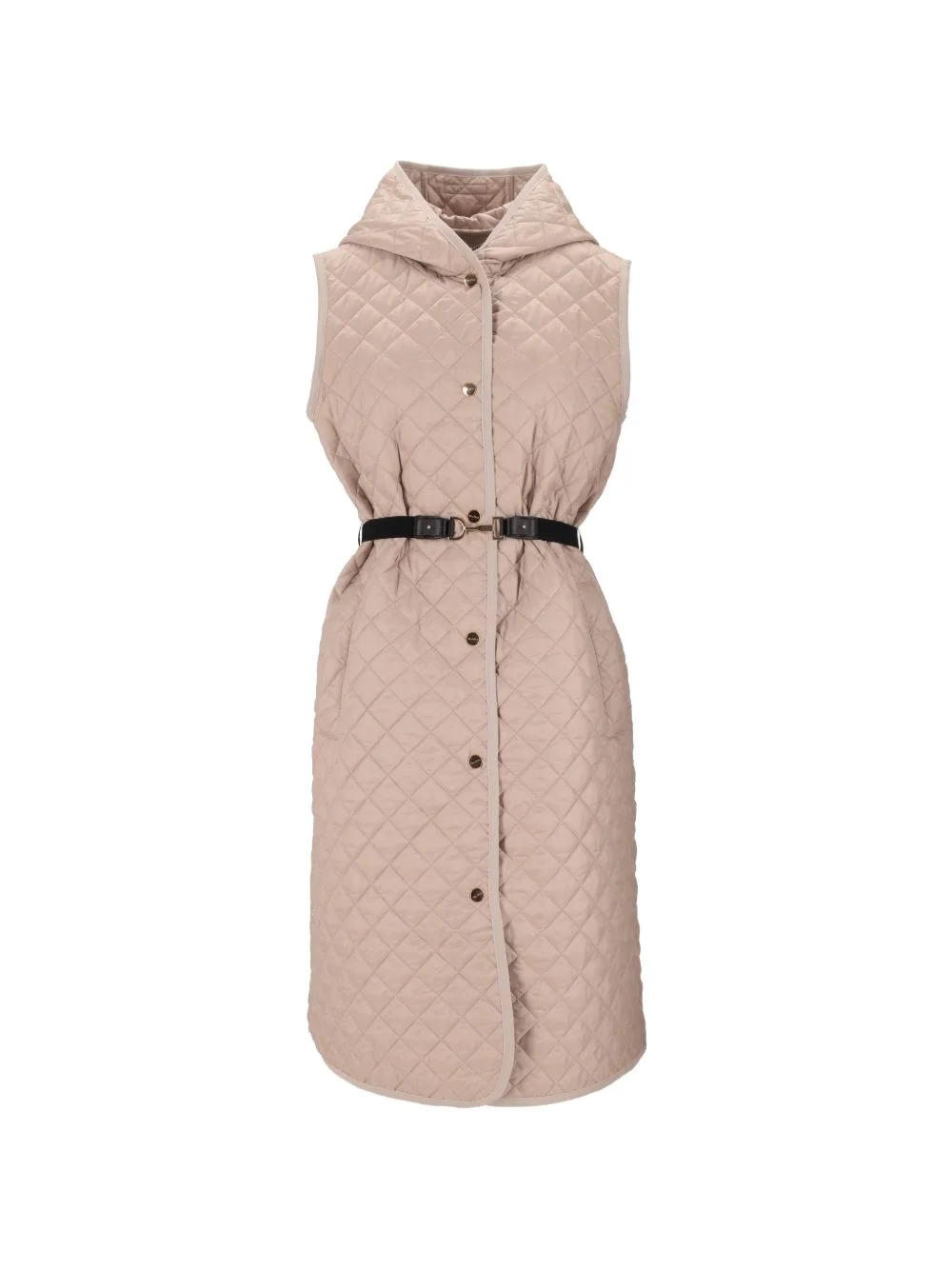 hooded quilted gilet Highlights - Light brown - Hooded - Diamond quilting - Button fastening - Belt Imported Composition Lining: Polyester 100% Filling: Camel Leather 48%, Camel Hair 48%, Silk 4% Trims: Polyester 80%, Rubber 20% Washing instructions Read Manufacturer Guidelines