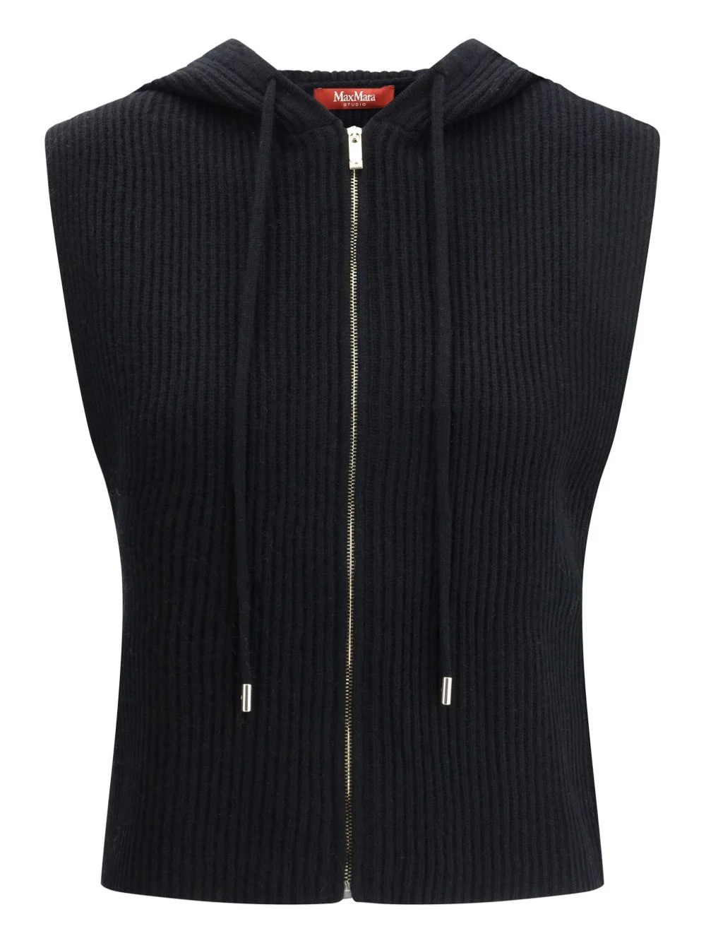hooded zip gilet Highlights - Black - Ribbed knit - Hood - Zip-fastening - Sleeveless Imported Composition Wool 80%, Cashmere 20% Washing instructions Hand Wash