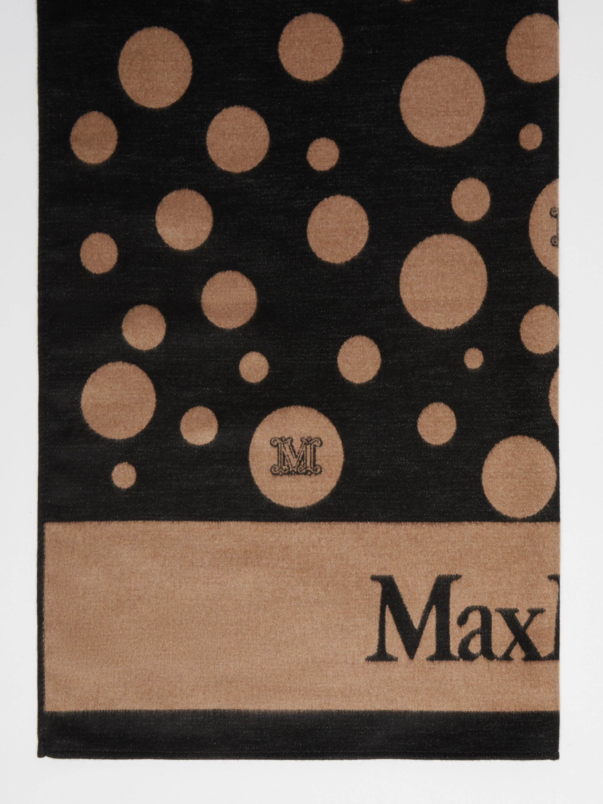 DETAILS Stole in fine pure silk yarn featuring a jacquard-knit pattern that creates all-over polka dot Monogram detail, and a Max Mara logo at the hem. Fringe-embellished short sides. Size: 70 x 170 cm. COMPOSITION AND CARE 100% silk. Do not wash; do not bleach; do not tumble dry; cool iron; professionally dry clean perchloroethylene - mild process; do not wet clean. Distributed by Max Mara S.r.l., registered office in Reggio Emilia (Italy), Via Giulia Maramotti 4, 42124 (IT)