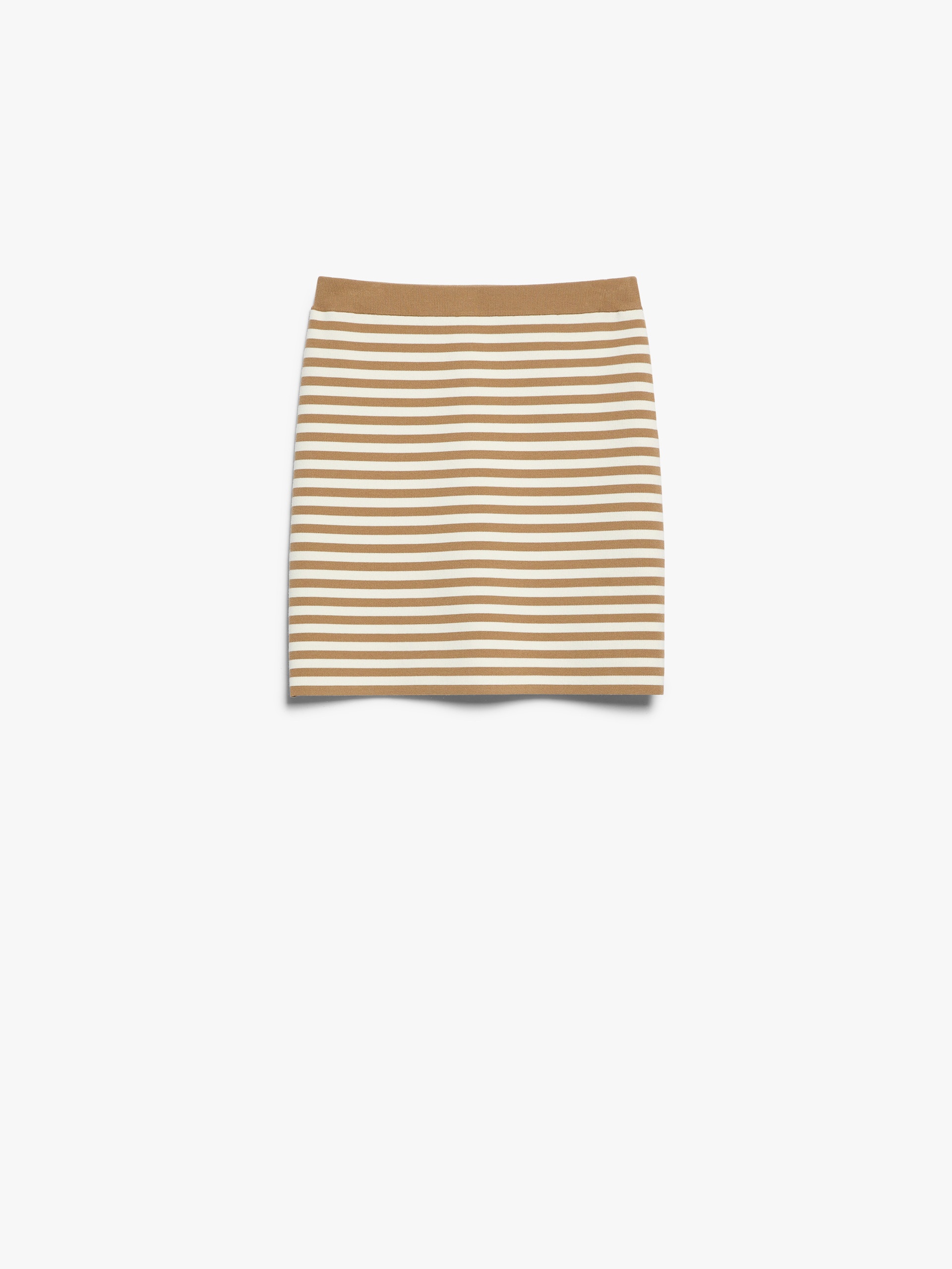 DETAILS Slim-fit mini skirt, made in a viscose crêpe yarn knit. Unlined garment embellished with an all-over jacquard design and elasticated waist with ribbed finish. COMPOSITION AND CARE 62% viscose, 38% polyester. Hand wash cold; do not bleach; do not tumble dry; flat drying in the shade; cool iron; professionally dry clean perchloroethylene - mild process; do not wet clean.; iron with a cloth between.; using neutral detergent. Distributed by Max Mara S.r.l., registered office in Reggio Emilia (Italy), Via Giulia Maramotti 4, 42124 (IT)