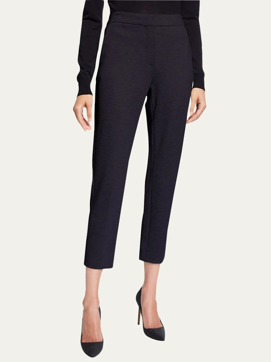 Maxmara pants in jersey. Mid rise. Flat front. Side slip pockets. Straight fit through legs. Cropped above ankles. Hook/zip fly. Viscose/nylon/spandex. Made in Poland. Model is 5'10"/177cm. Online Inquiries: BGS21_B4VYP| Store Inquiries: #3037485