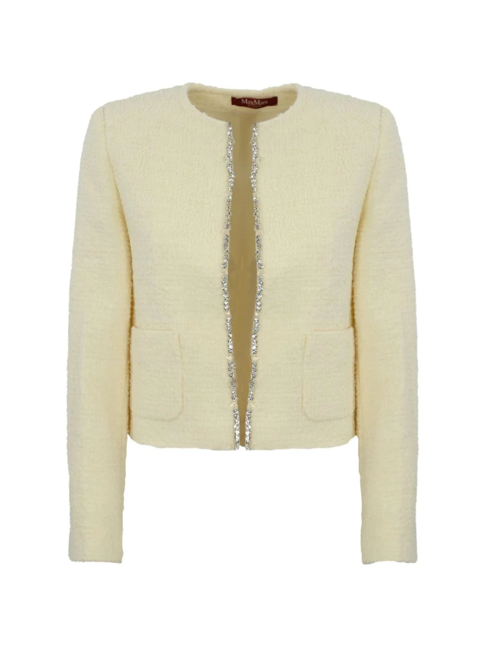 jewel-embellishment jacket Highlights - White - Jewel trim - Patch pockets - Round neck - Long sleeves - Button cuffs Imported Composition Fabric 100% Washing instructions Read Manufacturer Guidelines