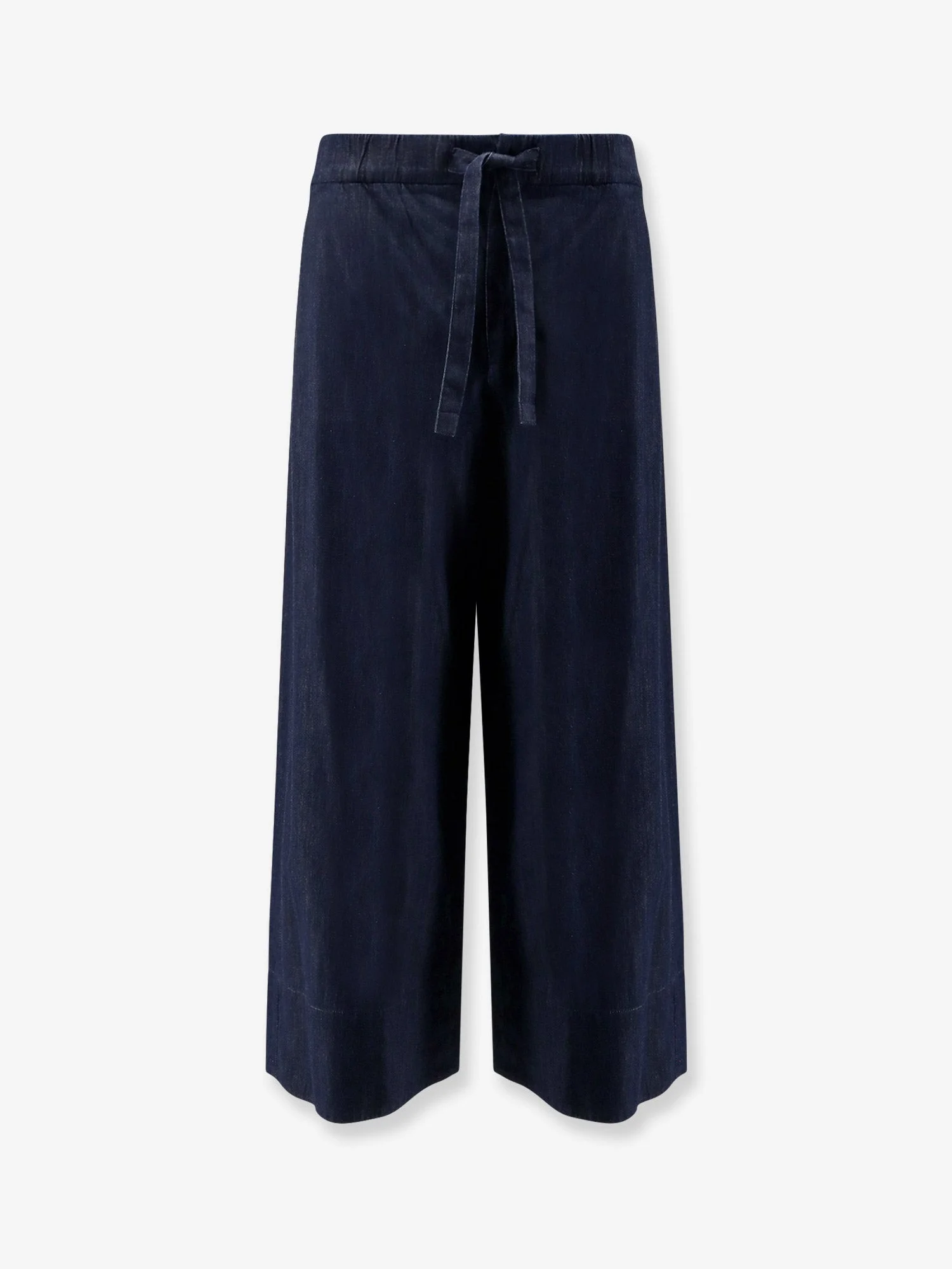 - Elastic waistband with adjustable drawstring - High waist - America pockets on the front - Wide Leg - 100% cotton - SKU: 2529186032600001