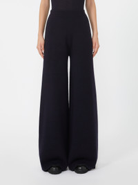 DETAILS Long trousers in a fabric-stitch knit. Wool and cashmere yarn trousers Straight cut Elasticated ribbed waist Back waist darts Logo plate at the centre of the waist back COMPOSITION AND CARE 70% wool, 30% cashmere. Hand wash cold (40°c max); do not bleach; do not tumble dry; flat drying in the shade; cool iron; professionally dry clean perchloroethylene - mild process; do not wet clean.; iron with a cloth between.; using neutral detergent. Distributed by Max Mara S.r.l., registered office in Reggio Emilia (Italy), Via Giulia Maramotti 4, 42124 (IT)