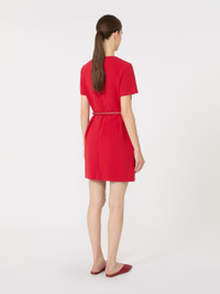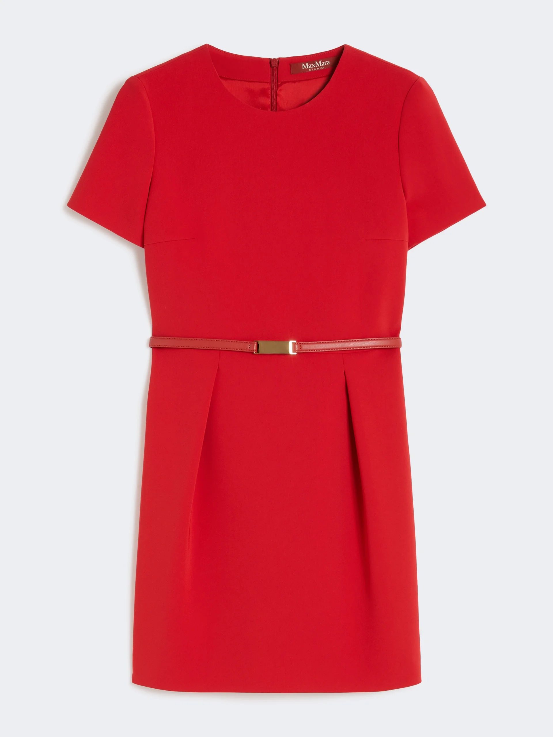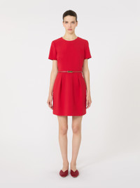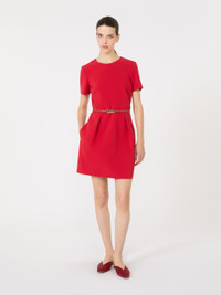 DETAILS Short dress with tulip skirt, high waist and gradient pleated pattern that gives volume. Cady dress Crew neck Short set-in sleeves Back zip fastening Side inset pockets Matching belt in coated fabric Lined COMPOSITION AND CARE Dress outer fabric 71% triacetate, 29% polyester; inner fabric 100% polyester; lining 70% acetate, 30% polyester; with belt in polyester with polyurethane coating. Dress: do not wash; do not bleach; do not tumble dry; cool iron; professionally dry clean perchloroethylene - mild process; do not wet clean. Belt: do not wash; do not bleach; do not tumble dry; do not iron; do not dry clean; do not wet clean. Distributed by Max Mara S.r.l., registered office in Reggio Emilia (Italy), Via Giulia Maramotti 4, 42124 (IT)