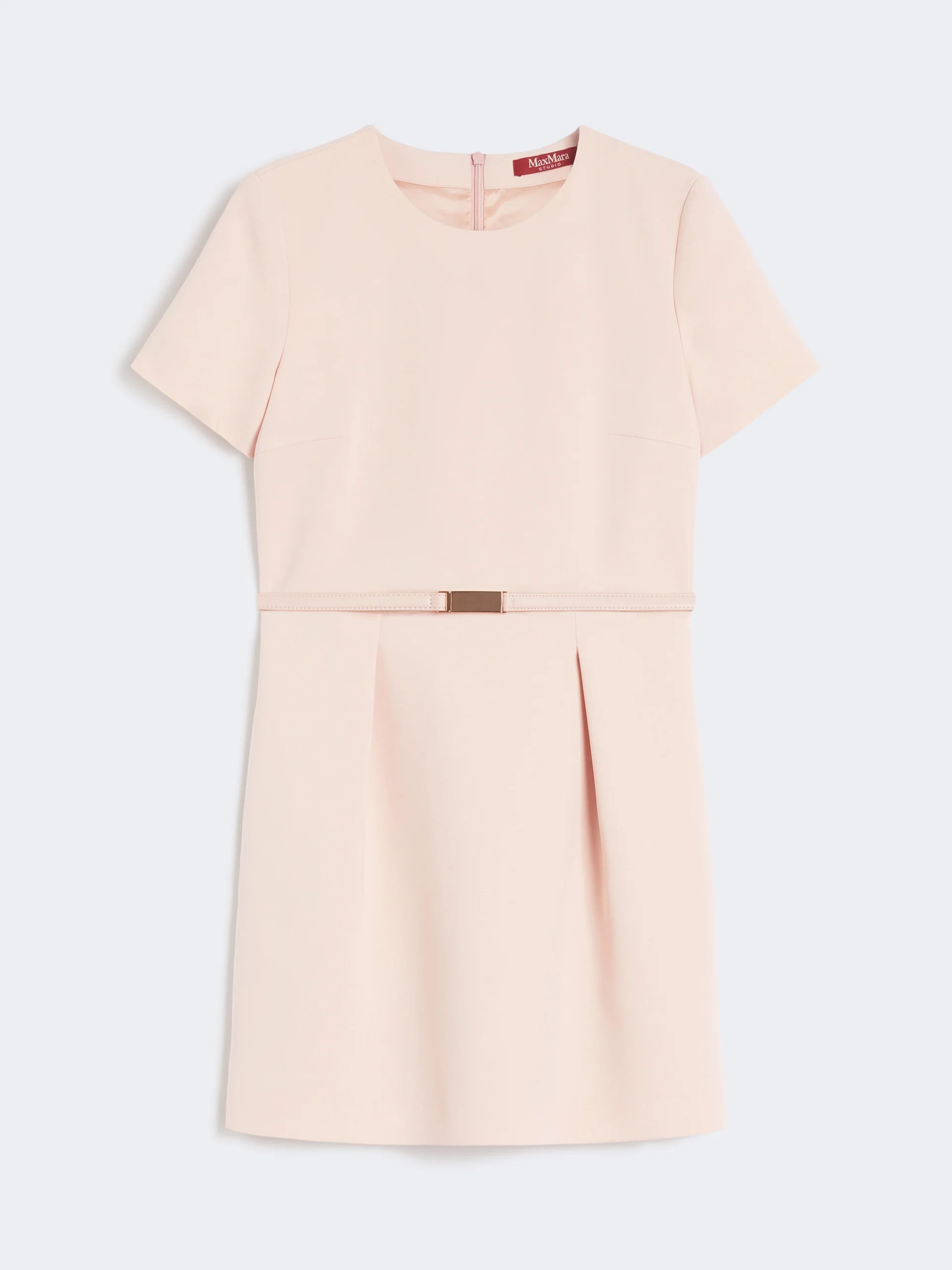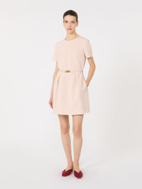 DETAILS Short dress with tulip skirt, high waist and gradient pleated pattern that gives volume. Cady dress Crew neck Short set-in sleeves Back zip fastening Side inset pockets Matching belt in coated fabric Lined COMPOSITION AND CARE Dress outer fabric 71% triacetate, 29% polyester; inner fabric 100% polyester; lining 70% acetate, 30% polyester; with belt in polyester with polyurethane coating. Dress: do not wash; do not bleach; do not tumble dry; cool iron; professionally dry clean perchloroethylene - mild process; do not wet clean. Belt: do not wash; do not bleach; do not tumble dry; do not iron; do not dry clean; do not wet clean. Distributed by Max Mara S.r.l., registered office in Reggio Emilia (Italy), Via Giulia Maramotti 4, 42124 (IT)