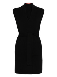 knitted vest Highlights - Black - Plunging v-neck - Sleeveless - Belted waist Imported Composition Viscose 72%, Polyester 28% SIZE & FIT Model measurements Height 5 ft 10 in(1.78 m) Bust/Chest 31.49 in(80 cm) Hips 37 in(94 cm) Waist 23.62 in(60 cm) FittingInformation Designed for a relaxed fit, this piece allows for comfort and movement when worn The tie fastening neckline offers a more secure fit allowing for adjustability Made with a midweight knit, this piece offers some stretch