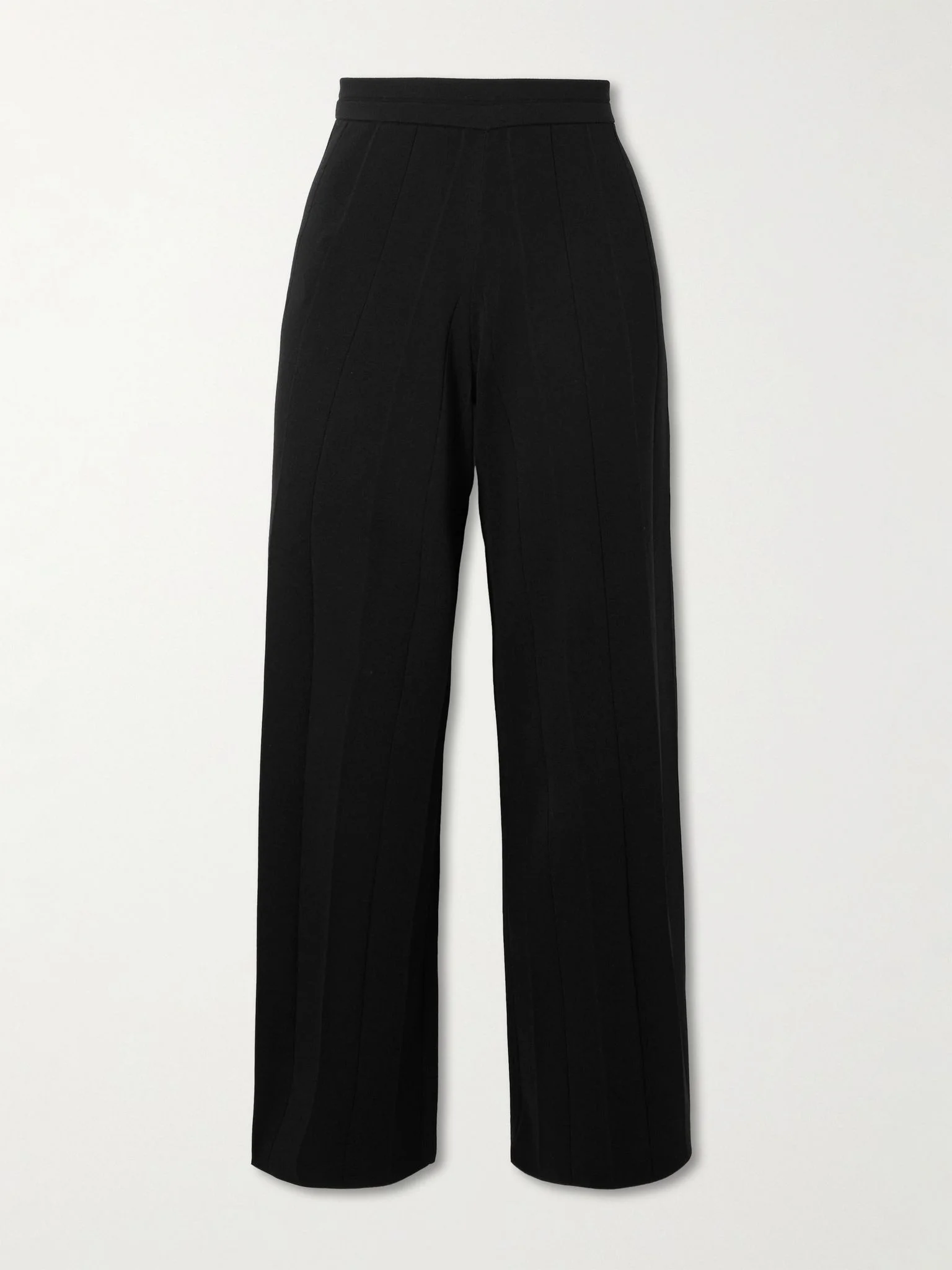 Max Mara's 'Lama' pants are chic and comfortable in equal measure. They're made from jersey that's finished with a subtle ribbed texture and have an elasticated waist and wide, floaty legs. Style yours with the matching 'Poltava' blouse in our edit. Size & Fit - Fits true to size, take your normal size - High-rise, cut for a wide-leg fit - Elasticated at the waist for a flexible fit - Mid-weight, stretchy fabric - Model is 180cm/ 5'11" and is wearing a size XSmall Model measurements: - Bust: 86cm/ 34" - Waist: 65cm/ 25.5" - Hip: 90cm/ 35.5" Details & Care - Black jersey - Pull on - 65% viscose, 35% polyamide - Hand wash