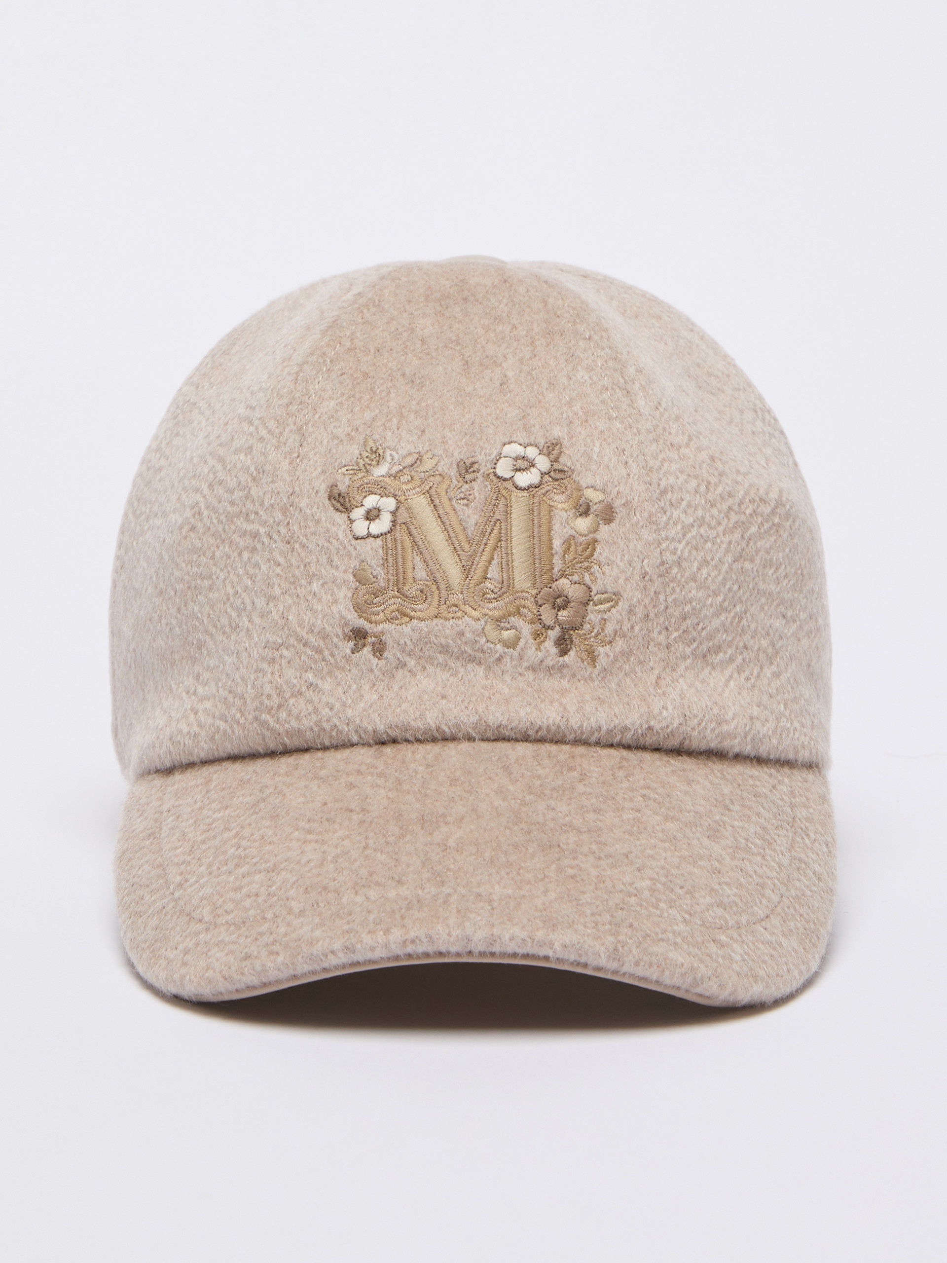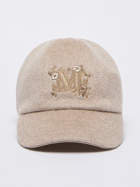 DETAILS Baseball cap in fine double-faced sable-look pure cashmere broadcloth featuring a semi-rigid peak. Customised with large floral-embroidered M Monogram detail on the front. Metal buckle-adjustable strap at the back. COMPOSITION AND CARE Fabric 100% cashmere; fabric except joining thread; lining 100% viscose; swearband 55% cotton, 45% viscose. Do not wash; do not bleach; do not tumble dry; do not iron; do not dry clean; do not wet clean.; contains non-textile parts of animal origin. Distributed by Max Mara S.r.l., registered office in Reggio Emilia (Italy), Via Giulia Maramotti 4, 42124 (IT)