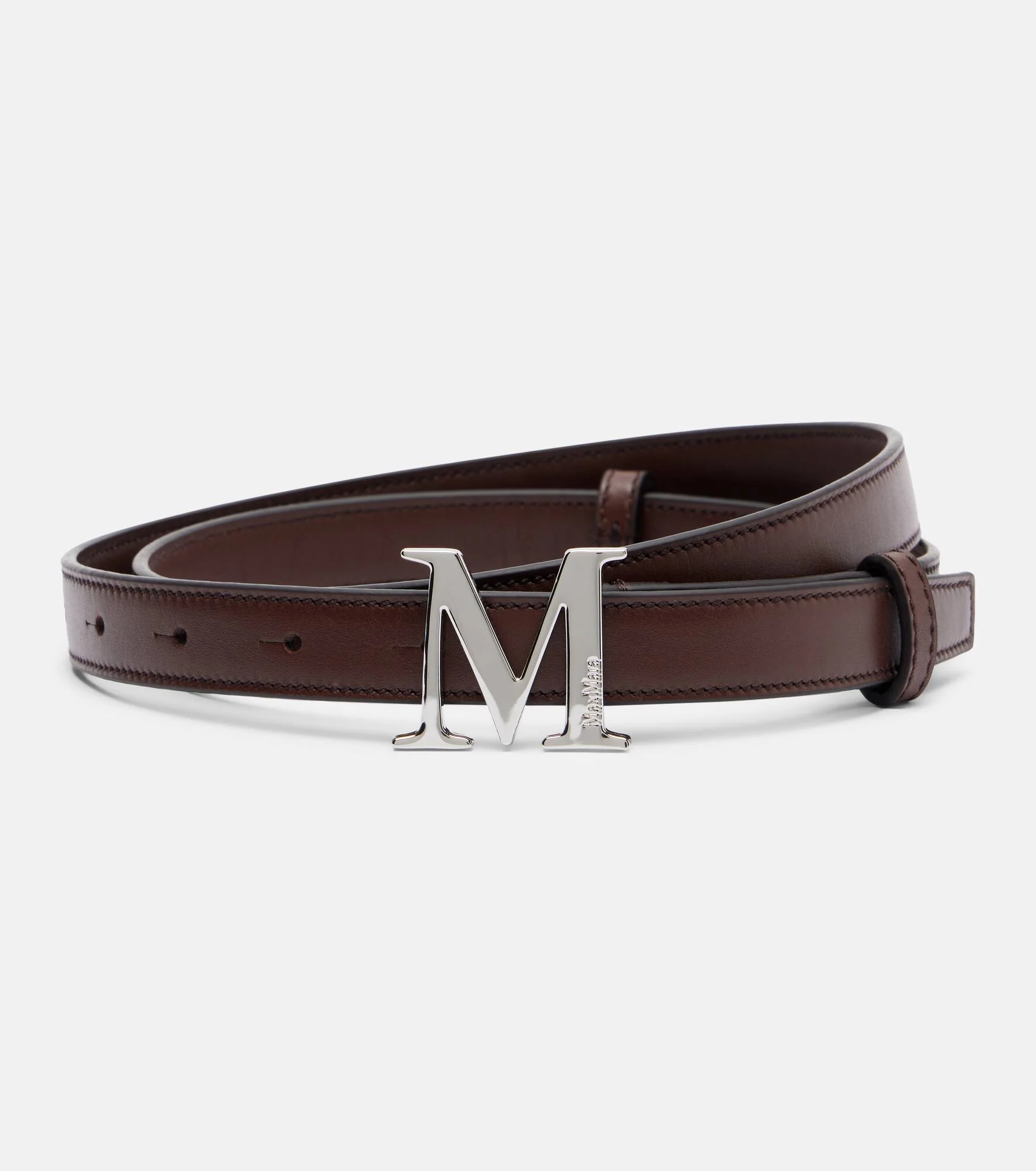 Boasting a rich manufacturing history, Max Mara represents the quintessence of Italian sophistication and expertise. Crafted from leather, this belt by Max Mara will be your new favorite go-to accessory. Product Details - Material: calf leather - Lining: leather - Made in Italy - Color: brown - Designer color name: Noce - Hardware color: silver - Includes: dust bag - Item number: P01115388 Size & Fit - Width 1,8cm-0.5" - Buckle width 3,3cm-1.5" - Length of size XS = 75/85cm-29.5/33.5" - Length of size S = 80/90cm-31.5/35.5" - Length of size M = 85/95cm-33.5/37.5" - Length of size L = 90/100cm-35.5/39.5"