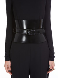 DETAILS Bustier belt in calfskin, with a brushed finish that makes it shiny and smooth to the touch. The design is completed by two side loops and a belt with a metal pin buckle. Width: 17.5 cm COMPOSITION AND CARE Material belt calf; back cattle. Distributed by Max Mara S.r.l., registered office in Reggio Emilia (Italy), Via Giulia Maramotti 4, 42124 (IT)