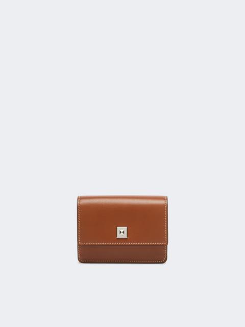 DETAILS Compact coin purse with small metal Monogram clasp, ideal for attaching to the MLace strap and Max Mara bags. - Coin purse in semi-glossy natural calfskin - Nappa leather interior with two card slots - Flat pocket with logo on the back and front pocket under the flap - Max Mara-branded metal pyramid press-stud fastening - Size: 10.5 x 2 x 8 cm COMPOSITION AND CARE Style in calf; inside in lamb leather; lining in 100%polyester. Distributed by Max Mara S.r.l., registered office in Reggio Emilia (Italy), Via Giulia Maramotti 4, 42124 (IT) Collection: MaxMara Accessori Product code: 4726045106003 - MMPURSE