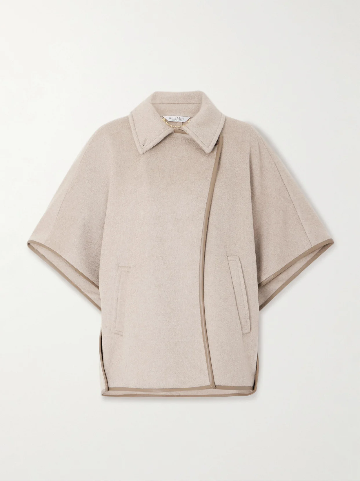Max Mara's collections exude an elegance that'll never date. This cape is made from soft cashmere-felt and trimmed with supple leather to define the shape. The wide, elbow-length sleeves are especially chic.