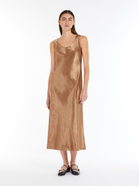 DETAILS Long sleeveless dress in shiny satin, with round scoop neckline on both sides and wide shoulder straps. The model stands out thanks to the interplay of diagonal and slanted seams on the front and back, which adds movement to the silhouette. COMPOSITION AND CARE 100% acetate. Do not wash; do not bleach; do not tumble dry; cool iron; professionally dry clean perchloroethylene - mild process; do not wet clean. Distributed by Max Mara S.r.l., registered office in Reggio Emilia (Italy), Via Giulia Maramotti 4, 42124 (IT)