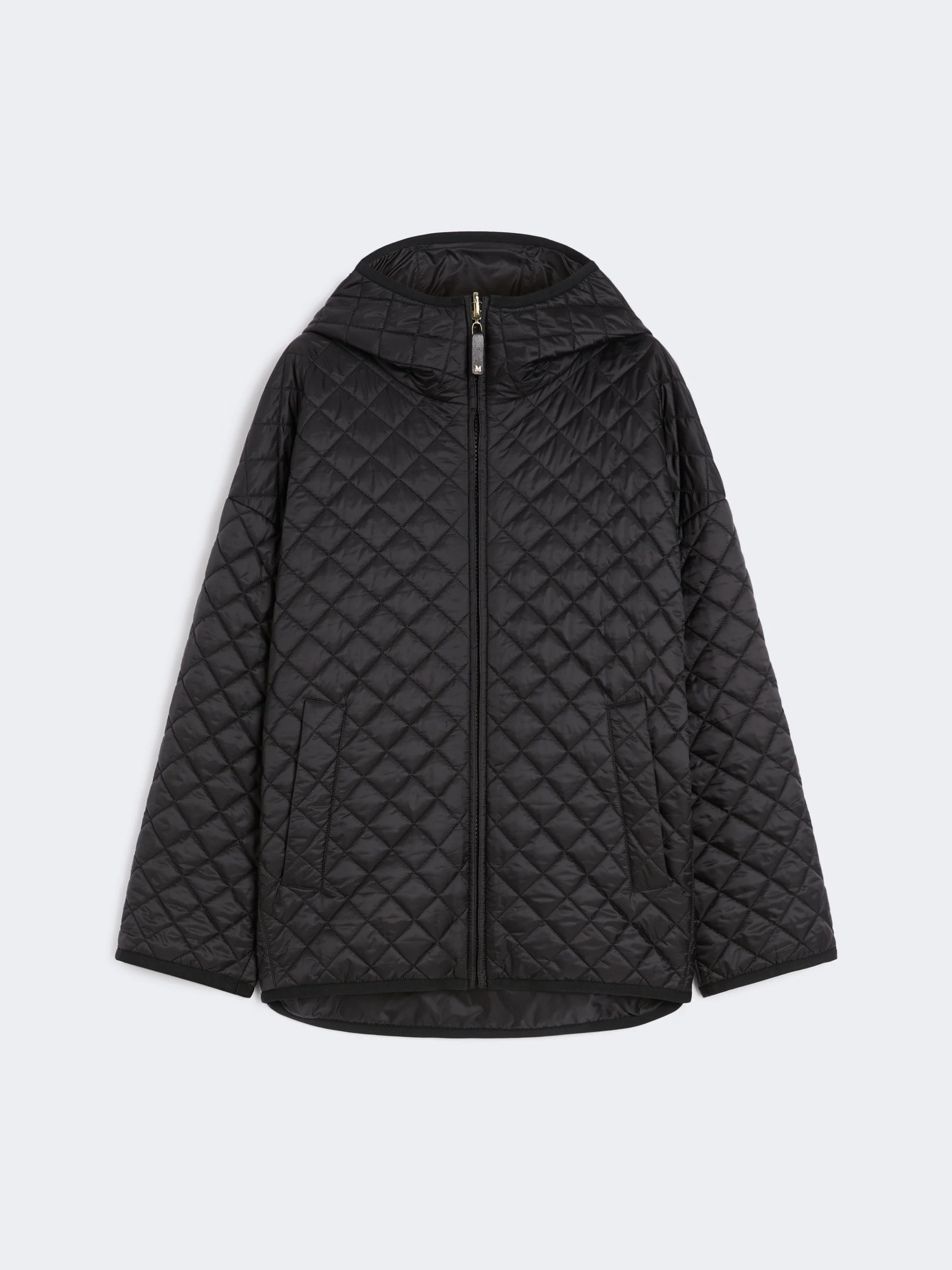 DETAILS Reversible short jacket with hood, stretch trims and hem that is slightly longer at the back. The style is distinguished by the Cameluxe padding Water-repellent canvas jacket Diamond quilted on one side and smooth on the other Long sleeves Front zip fastening with leather zip pull with metallic Monogram Welt pockets on one side, pockets inserted into the sides on the other COMPOSITION AND CARE Fabric 100% polyester; with quilting in 48% camelwool, 48% polyester, 4% silk; inner fabric 100% polyester; - exclusive of decoration. Do not wash; do not bleach; do not tumble dry; do not iron; professionally dry clean perchloroethylene - mild process; do not wet clean.; wash the garment while it is fastened.; don’t iron the labels.; take off the zip tongue before washing.; contains non-textile parts of animal origin. Distributed by Max Mara S.r.l., registered office in Reggio Emilia (Italy), Via Giulia Maramotti 4, 42124 (IT)
