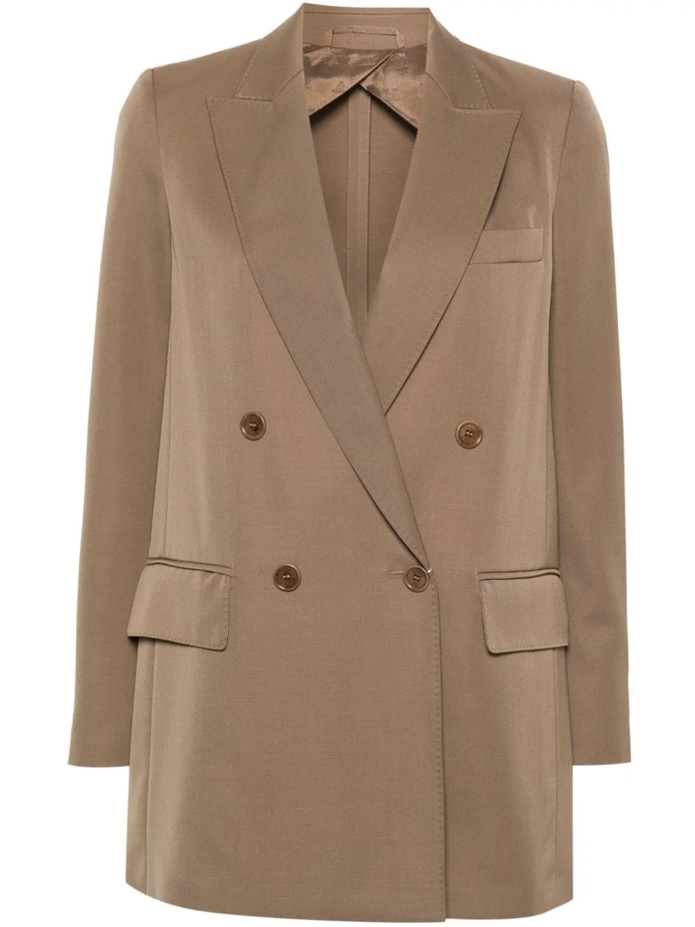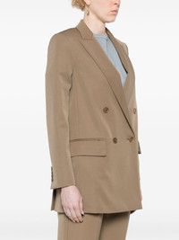 double-breasted blazer Highlights - Light brown - Virgin wool blend - Notched lapels - Shoulder pads - Long sleeves with faux buttoned cuffs - Chest welt pocket - Front flap pockets - English rear vents - Partial lining - Double-breasted button fastening Made in Italy Composition Lining: Acetate 65%, Polyester 35% Outer: Virgin Wool 85%, Mohair 15% SIZE & FIT Model measurements Height 5 ft 9 in(1.75 m) Bust/Chest 34.64 in(88 cm) Hips 36.61 in(93 cm) Waist 26.37 in(67 cm) FittingInformation Designed to be unstructured, offering a loose fit throughout The internal shoulder pads offer a structured shape Made from a midweight non-stretch fabric, this piece offers minimal elasticity when worn This piece fits true to size – take your usual size