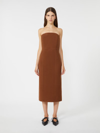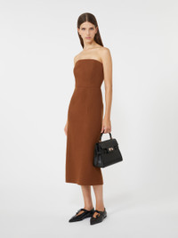 DETAILS Long bustier dress with a seam motif that highlights the silhouette. Hand-sewn, wool and cashmere double jersey dress Figure-hugging Zip fastening in the centre of the back Matching belt at the waist Semi-lined in stretch tulle with stays COMPOSITION AND CARE Jersey fabric 85% virgin wool, 10% cashmere, 5% polyamide; upper lining 78% polyamide, 22% elastane. Do not wash; do not bleach; do not tumble dry; cool iron; professionally dry clean perchloroethylene - mild process; do not wet clean.; iron with a cloth between. Distributed by Max Mara S.r.l., registered office in Reggio Emilia (Italy), Via Giulia Maramotti 4, 42124 (IT)