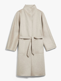 DETAILS Iconic Max Mara coat featuring a cardigan-inspired straight silhouette. Coat in hand-stitched pure cashmere zibeline double-face drap Semi-fitted Stand collar Long kimono sleeves Fastens with a matching belt Pockets at the front Unlined COMPOSITION AND CARE Fabric 100% cashmere; - except joining thread. Do not wash; do not bleach; do not tumble dry; cool iron; professionally dry clean perchloroethylene - mild process; do not wet clean. Distributed by Max Mara S.r.l., registered office in Reggio Emilia (Italy), Via Giulia Maramotti 4, 42124 (IT)
