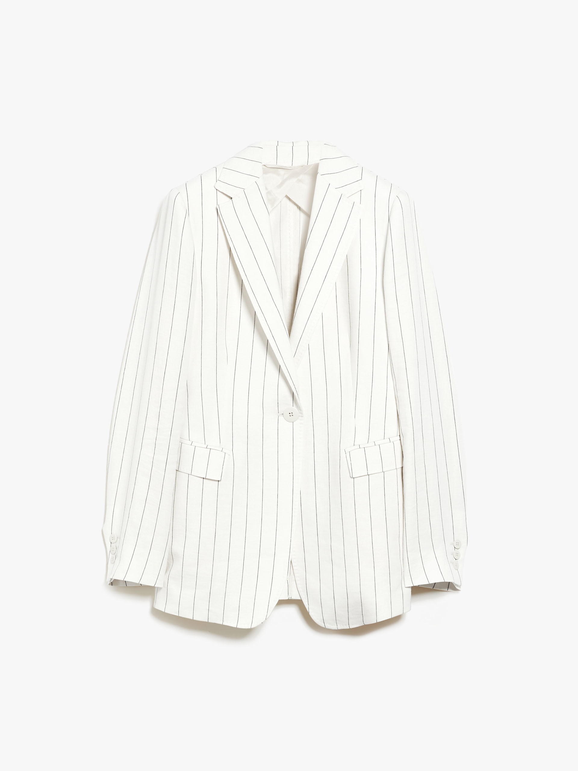 DETAILS Linen and cotton tailored blazer, lined and fastened with one button. Lapel collar, long sleeves. Applied flap pockets. COMPOSITION AND CARE Fabric 52% flaxlinen, 48% cotton; lining 70% acetate, 30% polyester. Do not wash; do not bleach; do not tumble dry; cool iron; professionally dry clean perchloroethylene - mild process; do not wet clean.; wash the garment while it is fastened.; protect buttons before washing.; turn the articles inside out before washing. Distributed by Max Mara S.r.l., registered office in Reggio Emilia (Italy), Via Giulia Maramotti 4, 42124 (IT)
