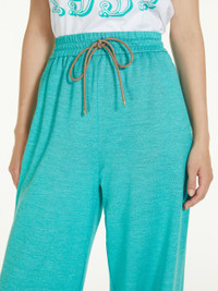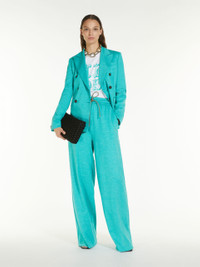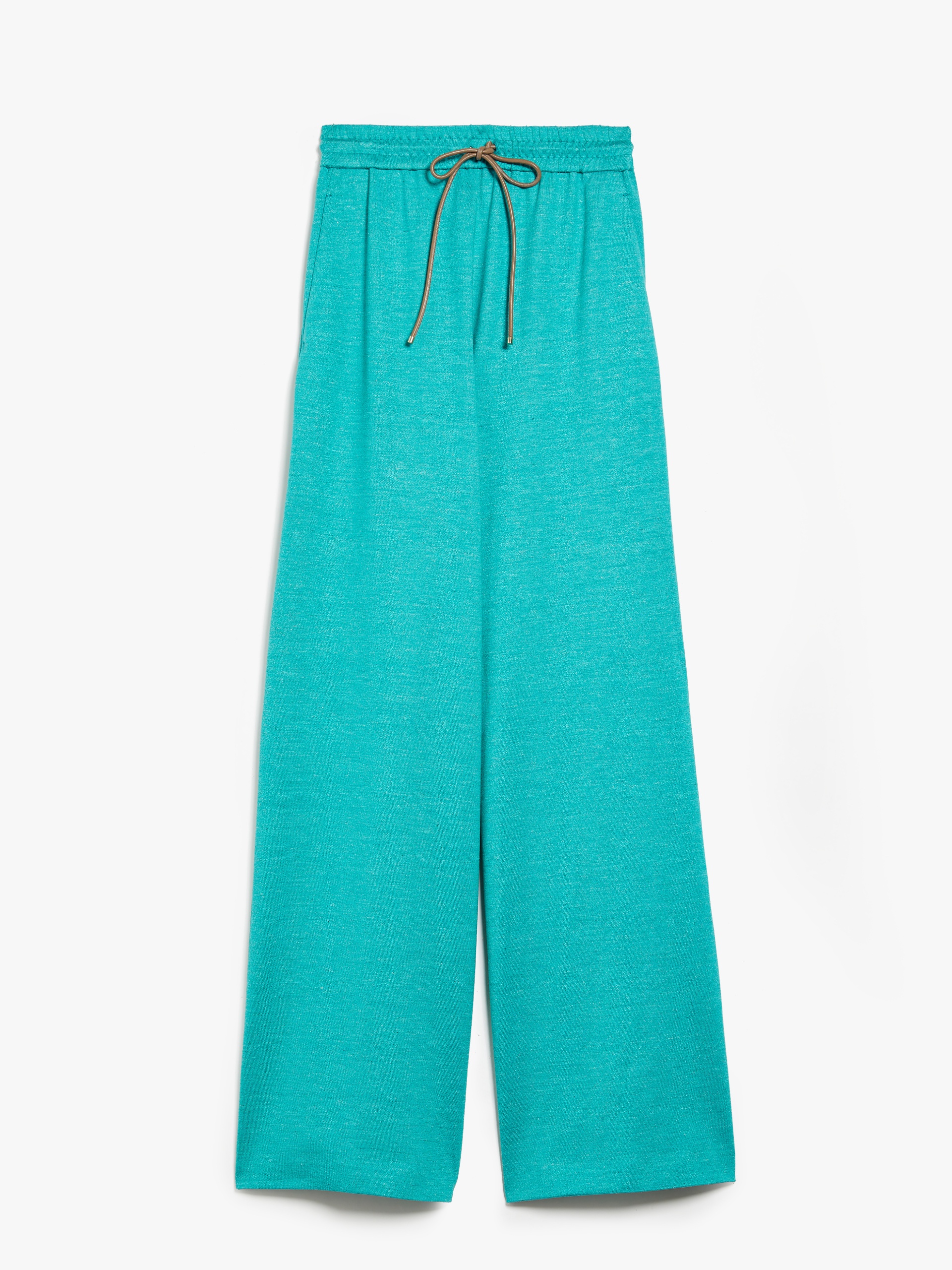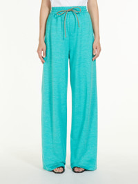 DETAILS Wide trousers with a sporty appeal made from soft cotton and linen jersey, characterised by an elasticated waist with drawstring and slanted pockets on the sides. Length: 112 cm. COMPOSITION AND CARE 60% cotton, 40% flaxlinen. Do not wash; do not bleach; do not tumble dry; cool iron; professionally dry clean perchloroethylene - mild process; do not wet clean.; iron with a cloth between. Distributed by Max Mara S.r.l., registered office in Reggio Emilia (Italy), Via Giulia Maramotti 4, 42124 (IT)