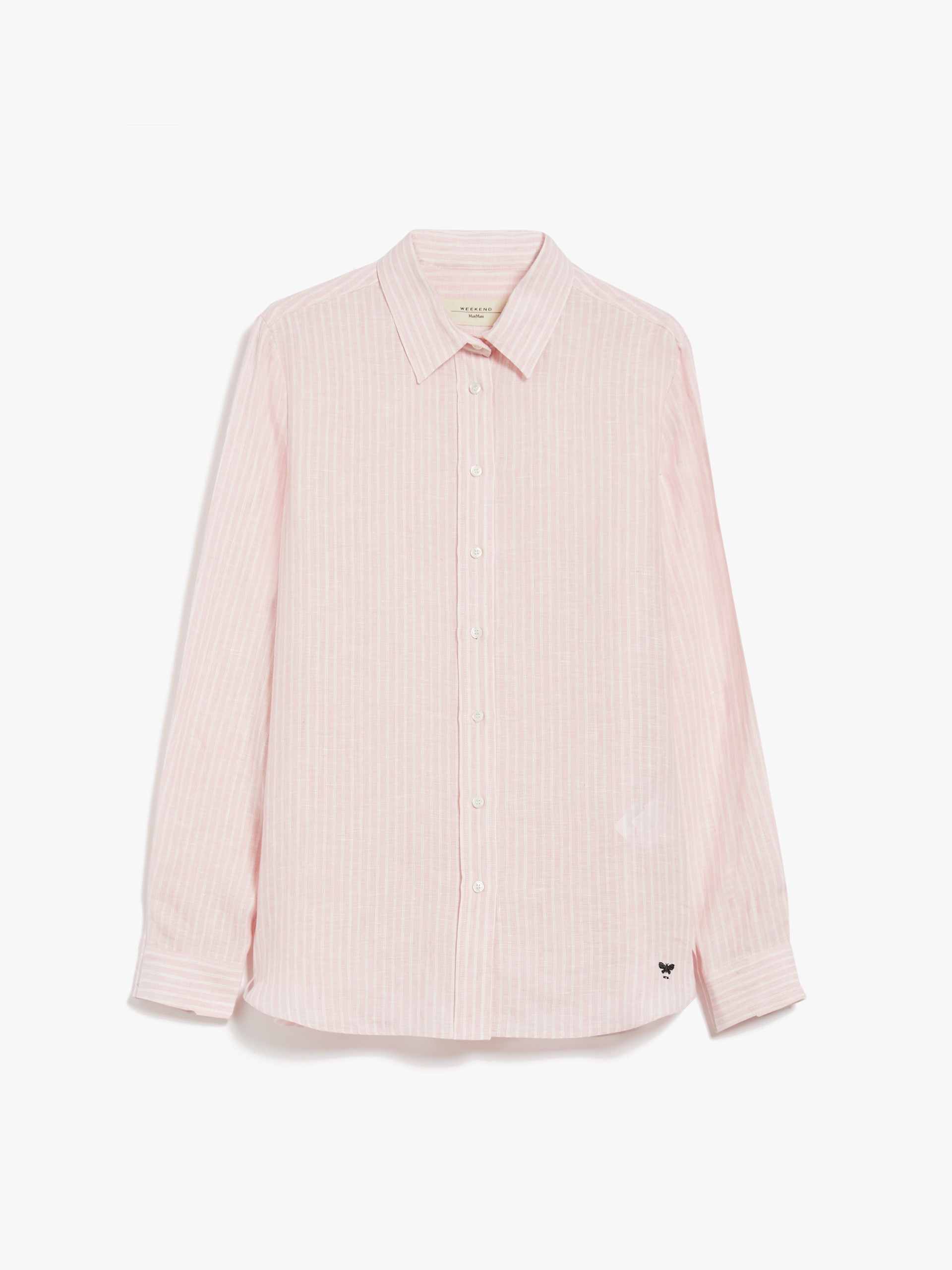 DETAILS Classic-fit shirt in pure linen canvas with a button fastening. Collar and long sleeves with cuffs. Embroidered logo at the hem. Relaxed fit. COMPOSITION AND CARE Fabric 100% flaxlinen; - exclusive of embroideries. Machine wash cold delicate cycle; do not bleach; do not tumble dry; line drying in the shade; cool iron; professionally dry clean perchloroethylene - mild process.; wash the garment while it is fastened.; turn the articles inside out before washing.; contains non-textile parts of animal origin. Distributed by Max Mara S.r.l., registered office in Reggio Emilia (Italy), Via Giulia Maramotti 4, 42124 (IT)